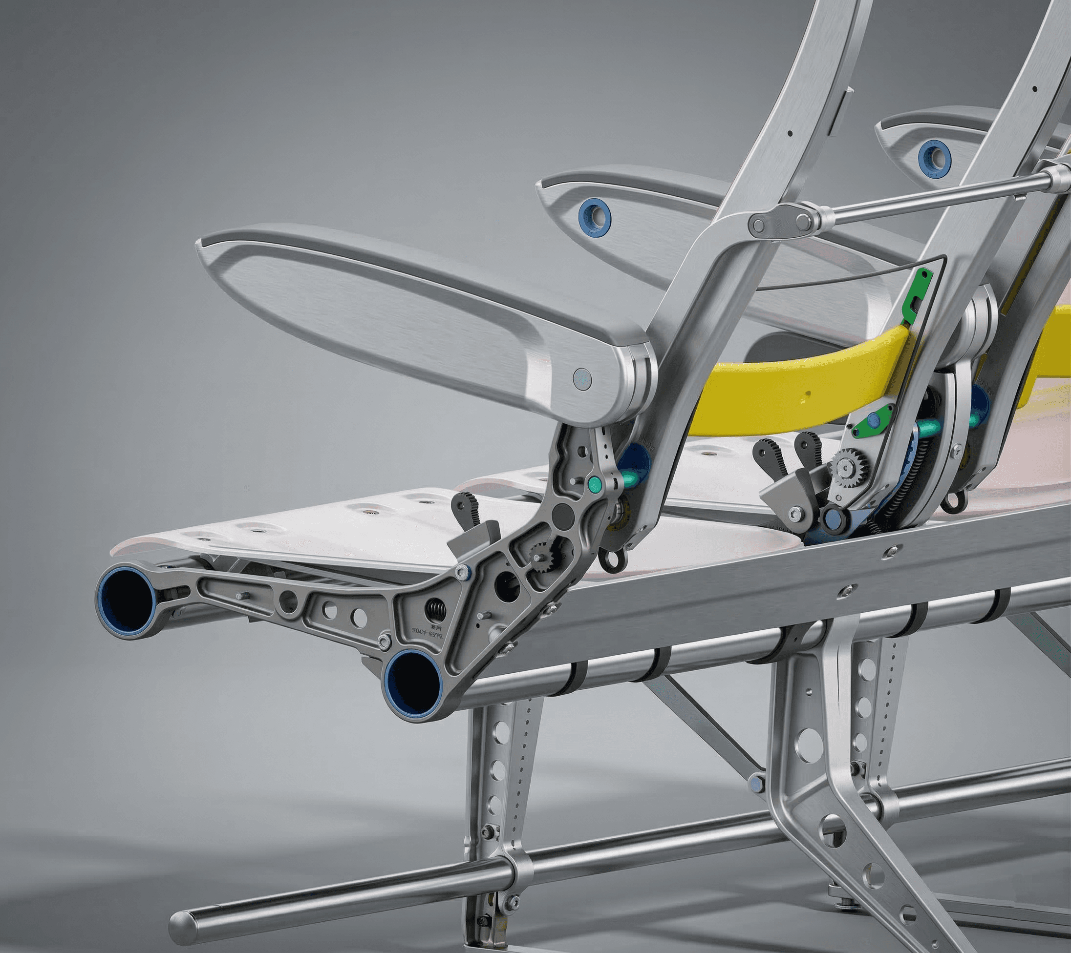 We managed the entire lifecycle, from initial industrial design to rigorous simulations. Using advanced Finite Element Analysis (FEA), we optimized the seat structure to achieve record-breaking weight reduction. A significant focus was placed on backrest ergonomics, where we engineered a contoured surface that supports natural spine alignment, ensuring comfort even in high-density seating configurations.